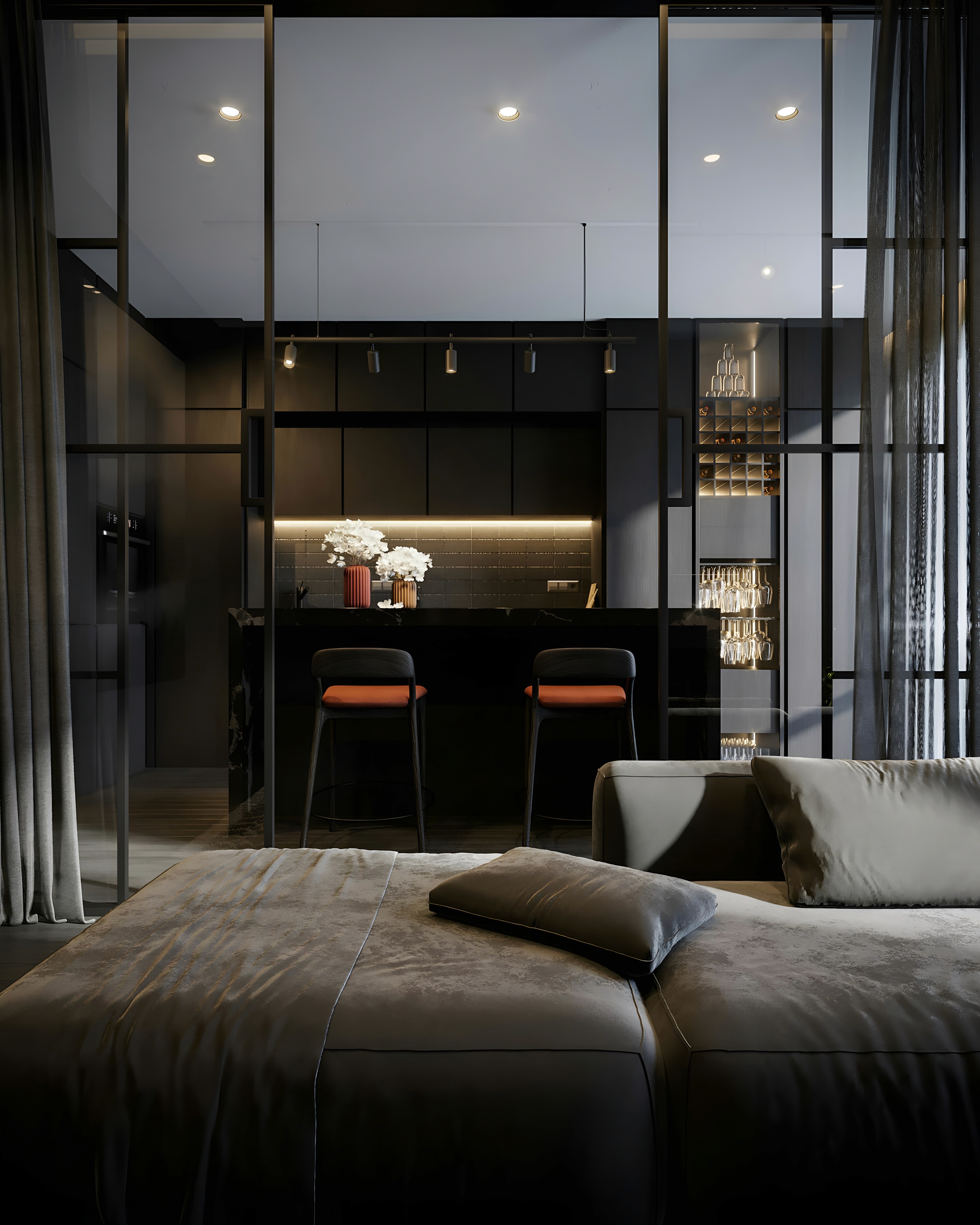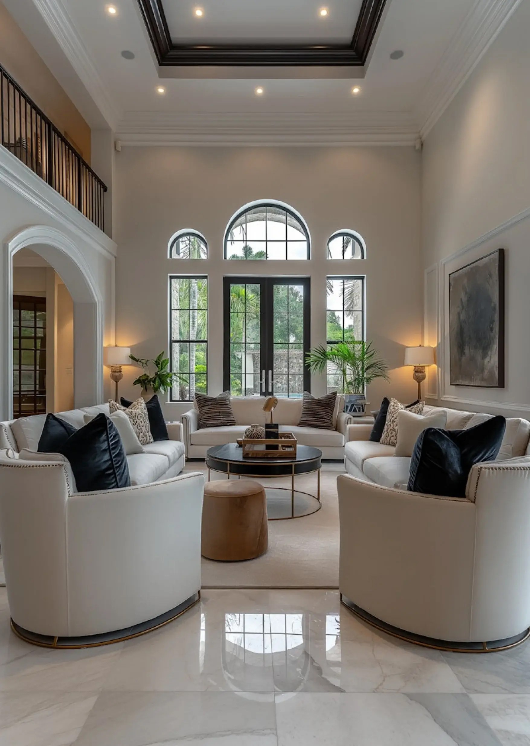 a living room filled with furniture and a large window